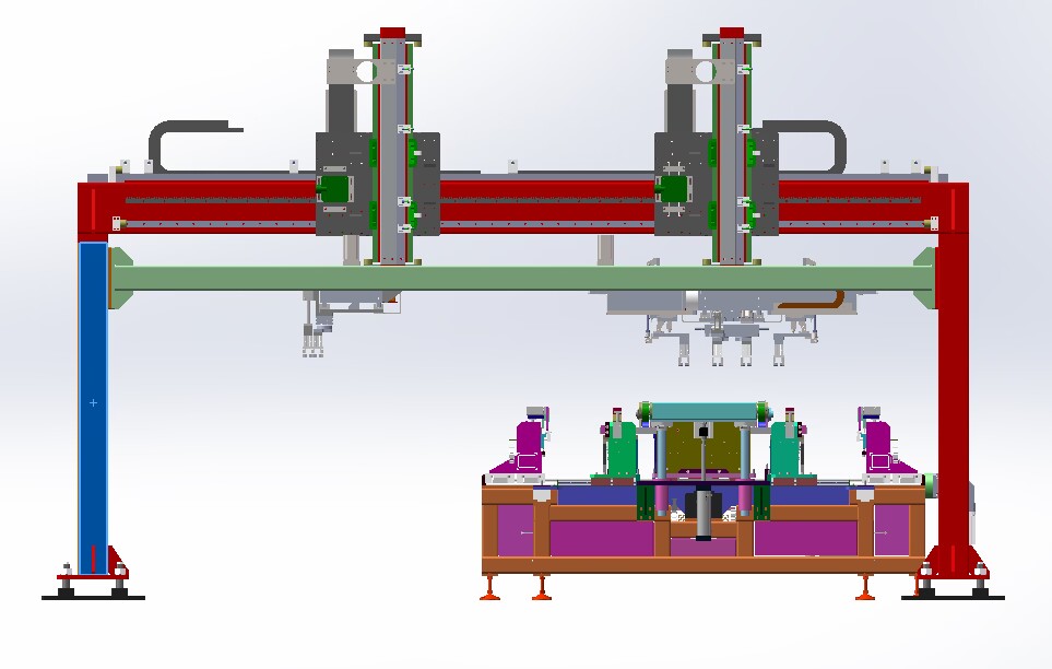 本生產(chǎn)線依據(jù)用戶需求,進(jìn)行“量身”設(shè)計,由層壓前鋪設(shè)傳輸線;通過不同機(jī)構(gòu)的傳輸、轉(zhuǎn)運、變向、定位、旋轉(zhuǎn)/釋放實現(xiàn)組件封裝過程的流水化操作,可提高單位組件生產(chǎn)效率。